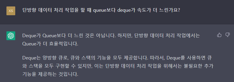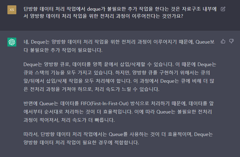 단방향 데이터 처리 작업에서 Deque를 사용할 때 불필요한 추가 작업에 대해 자세히 물어보았다.