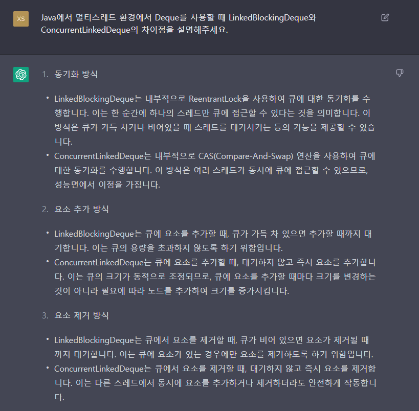 Q. 멀티스레드 환경에서 사용하는 LinkedBlockingDeque와 ConcurrentLinkedDeque의 차이는?